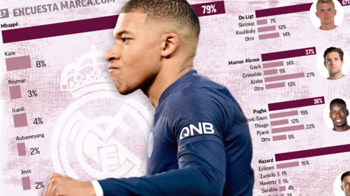 MARCA.com readers voted in a poll of who they would most like to see signed by Los Blancos and Mbappe claimed an astonishing 79 percent of the votes, which was participated in by over 200,000 people.