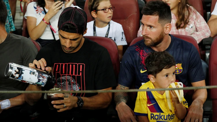 Barcelona faced Real Betis at Camp Nou on Sunday without stars Luis Suarez and Lionel Messi, among other injured players. The duo were present at the game though, and watched it together in the front row with their families.
