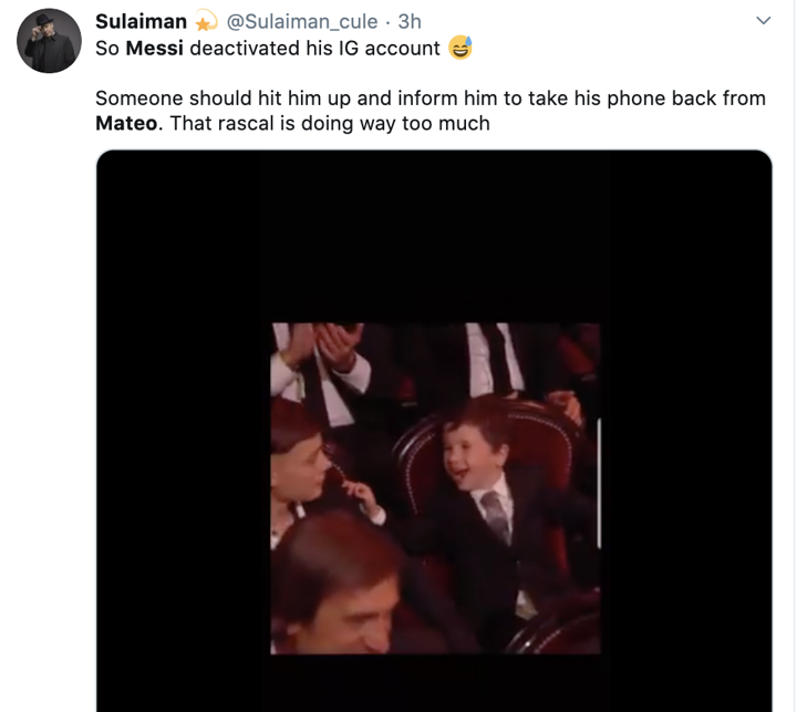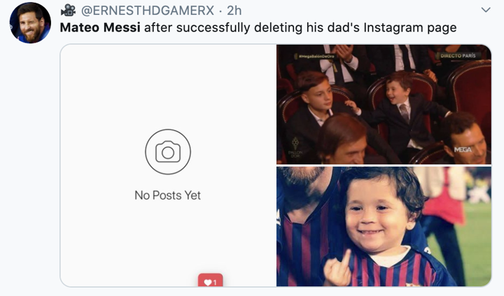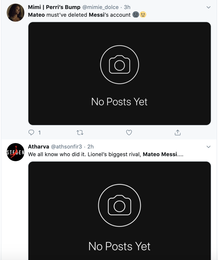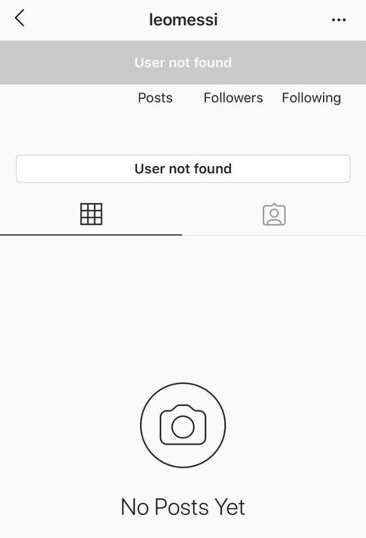 It shows the account 'Leomessi' does not exist with no posts, after which many fans on internet began to troll Mateo Messi for doing that.