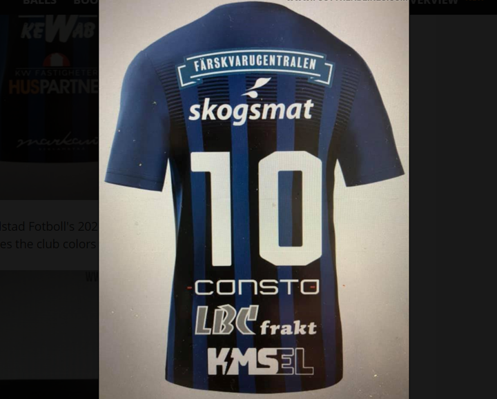 Karlstad Fotboll's new 2020 home shirt has an enormous number of sponsors on the front, back, sleeves and also on the shorts.