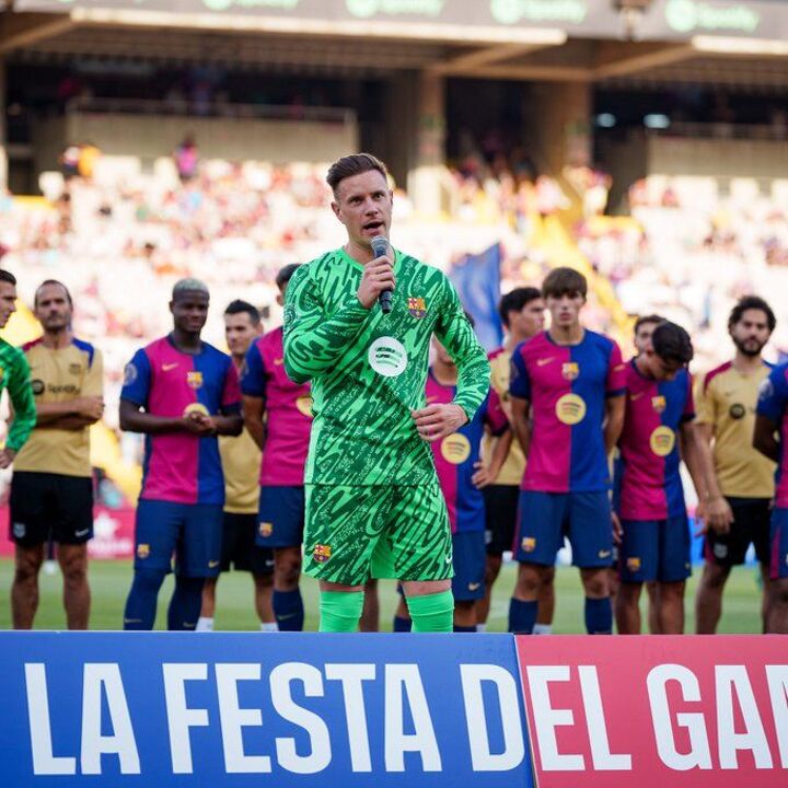 Ter Stegen, who is the first captain not reared at La Masia for two decades since Luis Enrique wore the armband in 2004, addressed the fans for the first time in his new role at the showcase Joan Gamper trophy match. As the squad was presented to the fans at the Estadi Olimpic Lluis Companys at Montjuic, ter Stegen started his speech in Catalan, before thanking two faces who have departed the club.