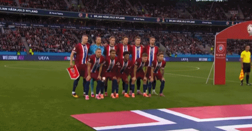 Norway XI: Nyland, Sørloth, Patrick Berg, Kristoffer Ajer, Berge, Ryerson, Haaland, Torbjørn Heggem, David Møller Wolfe, Bobb, Antonio Nusa