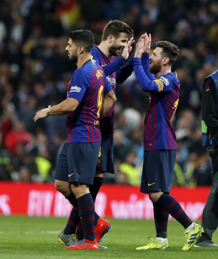 As usual on a visit to the Bernabeu, Pique made gestures to the home crowd that whistled him during the opening stages of the game.