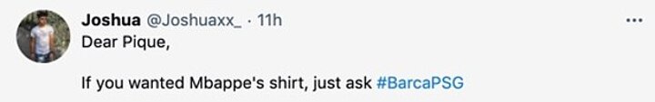 'Dear Pique, if you wanted Mbappe's shirt, just ask,' one fan joked.