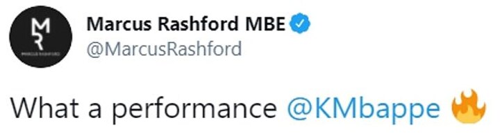 'Big player!' wrote Sancho, while Rashford added, 'what a performance' with a fire emoji to emphasis Mbappe's hot-streak.