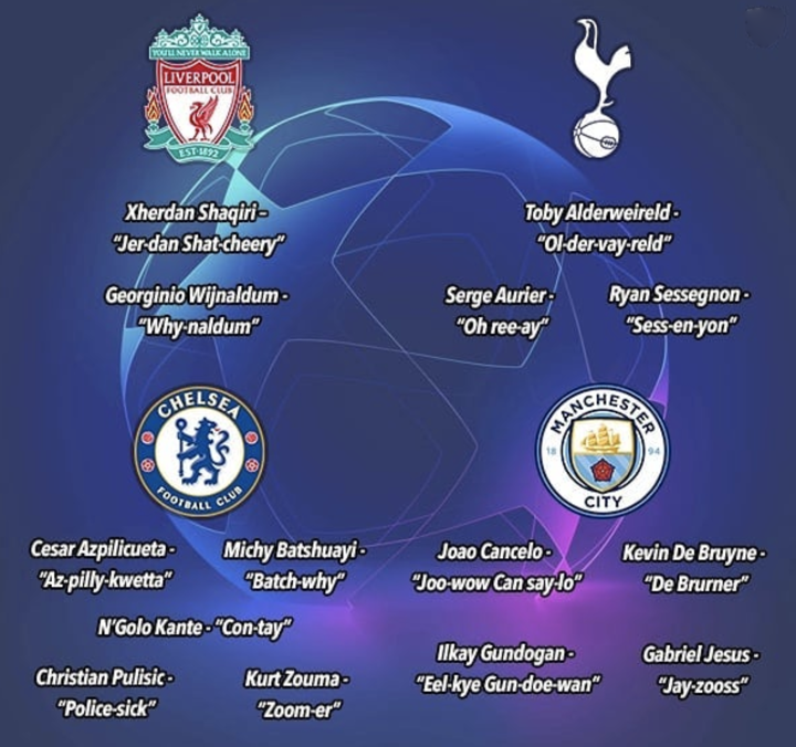 Here's a pronunciation guide for some players in UCL:Have you been pronouncing their names right? Copyright Declaration