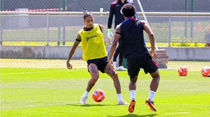According to reports, Raphinha returned to the training ground on Wednesday local time and completed part of the team session. He had been sidelined for nearly a month due to a hamstring injury in his right leg.
