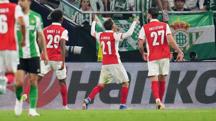 And Braga then took the lead in the second leg, and the tie, soon after as Sofyan Amrabat's clumsy foul on Demir Ege Tiknaz allowed Horta to dispatch from the penalty spot, while Jean-Baptiste Gorby scored a stunning volley in the 74th minute to make sure of a memorable victory.