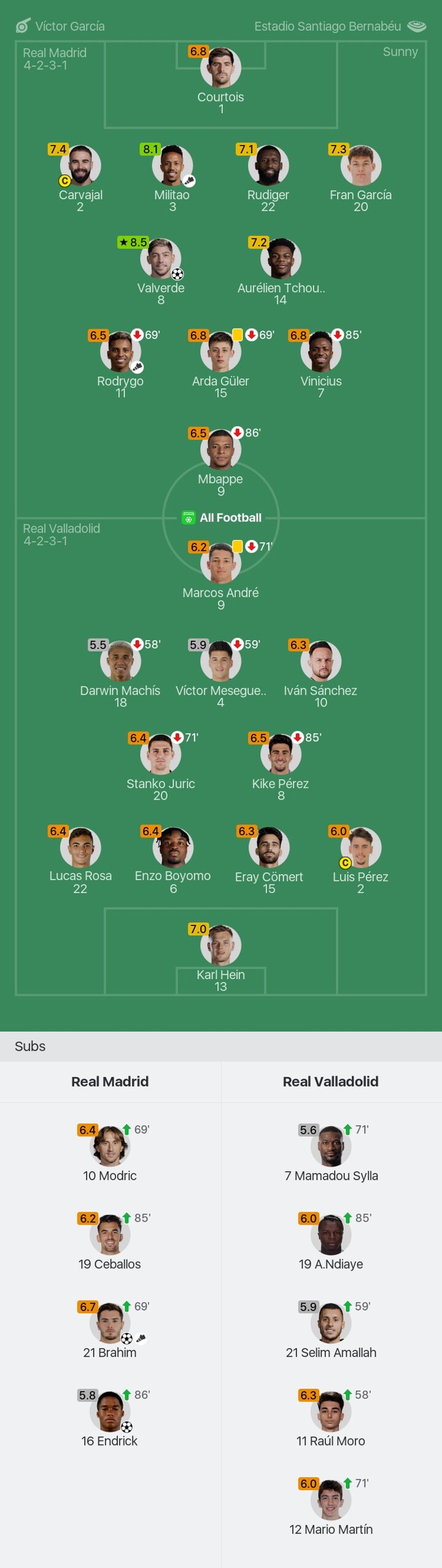 We bring you the player ratings for Real Madrid vs Real Valladolid as Valverde becomes Man of the Match with a rating of 8.5.