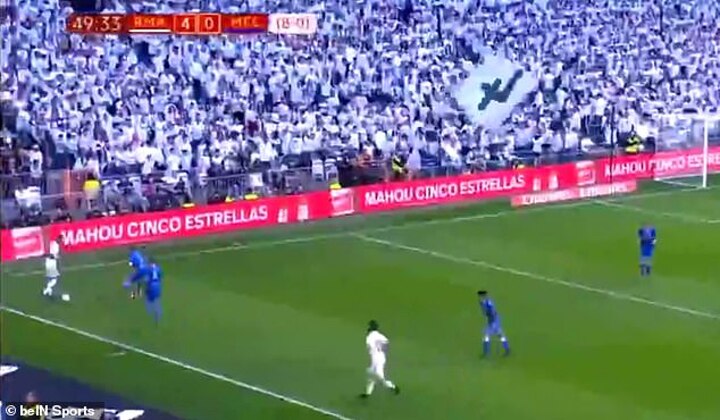 Early in the second half, with Real Madrid coasting at 4-0, he tried an outrageous rainbow flick to try and get past two defenders. Unfortunately it didn't work out so well.
