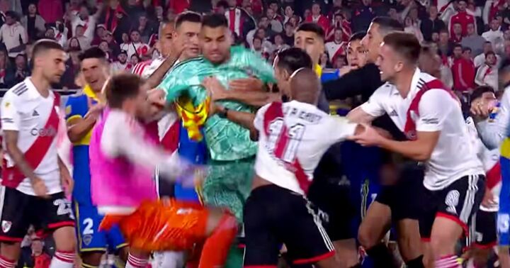 A further three were shown to Boca stars Miguel Merentiel, Ezequiel Fernandez and Nicolas Valentini, with additional time running until 90+19.
