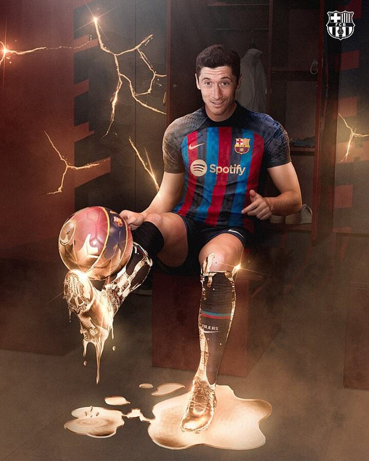 Robert Lewandowski has been pictured in a Barcelona strip for the first time since his much-anticipated move from Bayern Munich.