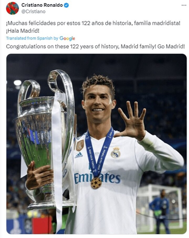 'Congratulations on these 122 years of history, Madrid family! Go Madrid!' he wrote on X, formerly Twitter.