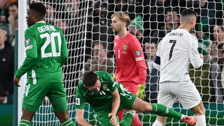 Cristiano Ronaldo was sent off as Republic of Ireland stunned Portugal with a 2-0 win and forced Roberto Martinez's side to wait to qualify for the 2026 World Cup.