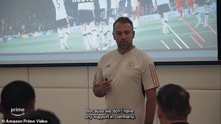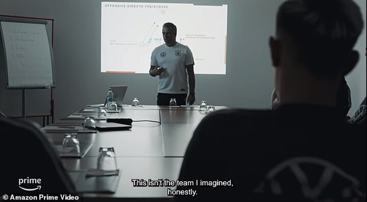 The trailer shows a heated argument in training between Antonio Rudiger and Joshua Kimmich, a despondent Hansi Flick warning his players there's little support for them back home and Leon Goretzka reflecting on the impact of playing in Qatar.