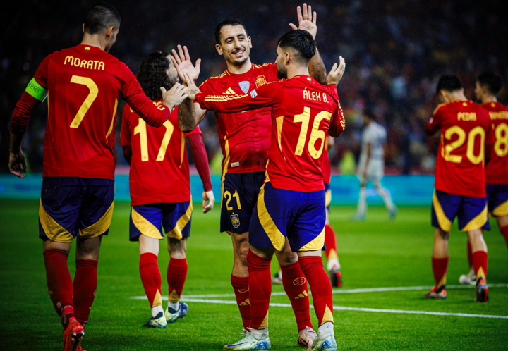 Spain XI: Morata, Laporte, David Raya, Merino, Marc Cucurella, Fabian Ruiz, Oyarzabal, Martín Zubimendi, Dani Vivian, Álex Baena, Pedro Porro