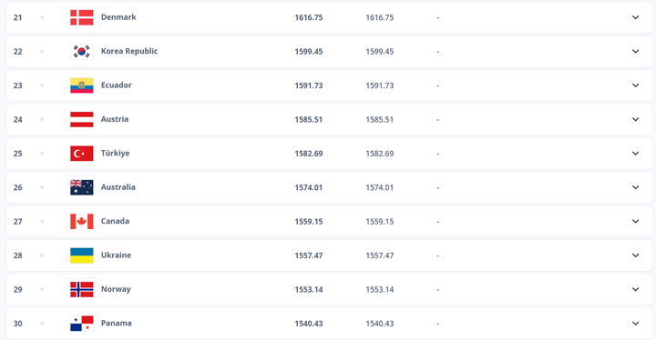 Other standout performers include Norway (29th, unchanged), who earned 68.70 points, and Suriname (123rd, unchanged), who have shot up 15 places since the December 2024 ranking. Twelve other nations have also climbed between 10 and 14 places over the past year.