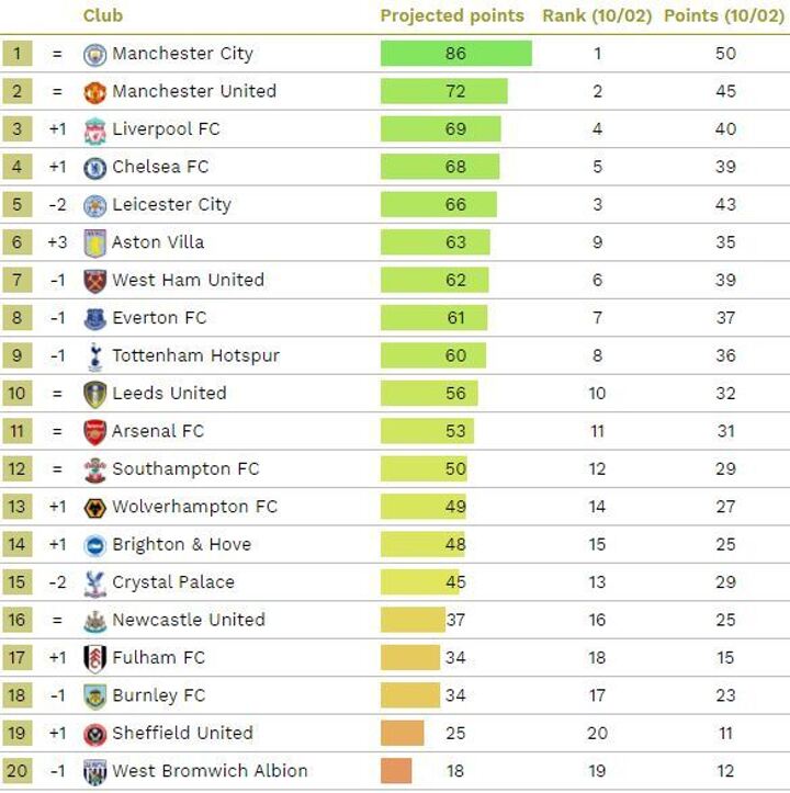 The two Manchester teams currently lead the Premier League table and are expected to do so at the end of the season too, with Pep Guardiola set to win another English title. Perhaps the most eye-catching prediction here is that Tottenham wouldn't even qualify for the Europa League.