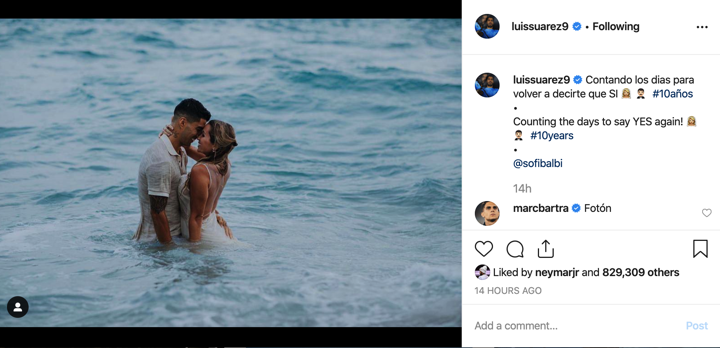 “Counting the days to tell you that yes again,” wrote Suarez and Sofia in their respective Instagram accounts, attaching the hashtag #10years.