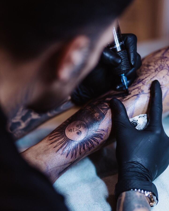 And he got another massive tattoo to remember Argentina's World Cup win, covering the lower half of his right leg.