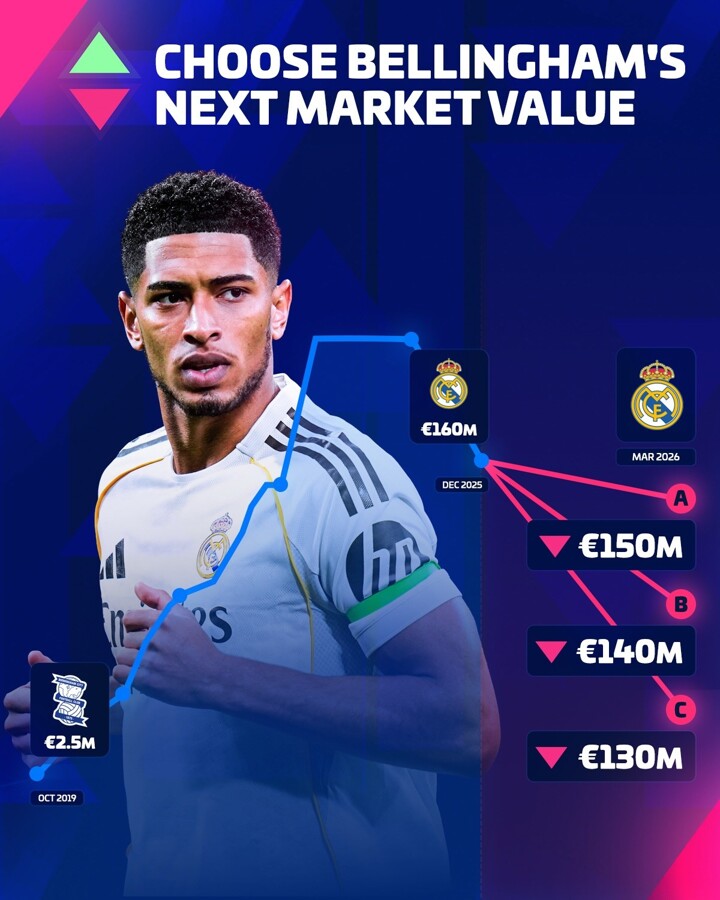 Transfermarkt has predicted in advance that Real Madrid midfielder Jude Bellingham's market value will drop, potentially falling to as low as €130 million.