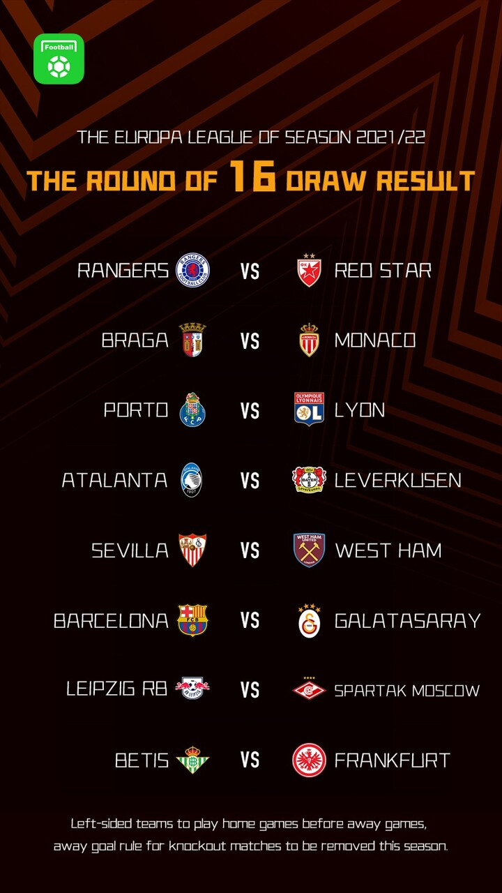 The 2021/22 UEFA Europa League Last 16 draw has been confirmed.