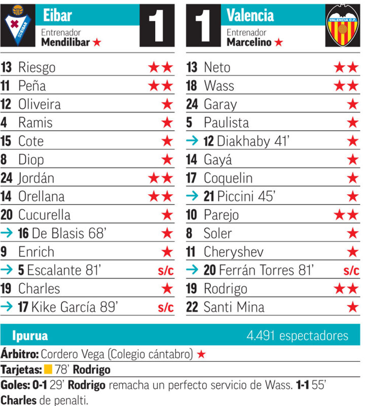 Valencia's poor league form continued after they could only draw 1-1 away to Eibar with Jose Luis Gaya conceding a penalty that was awarded after consultation with VAR.