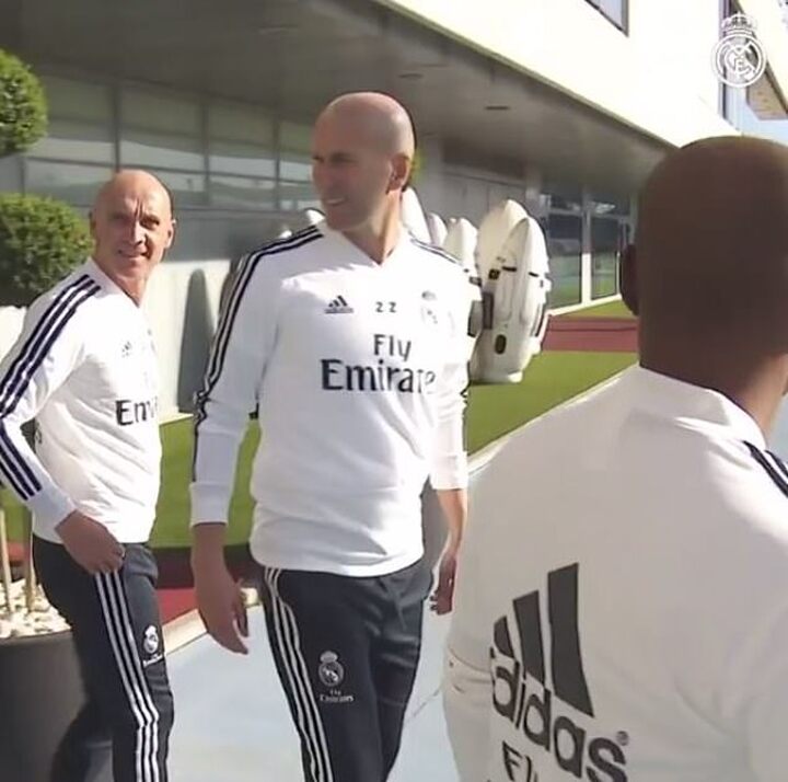 Zinedine Zidane and his coaching assistants took a few moments to take in the familiar surroundings of Real Madrid's training ground.