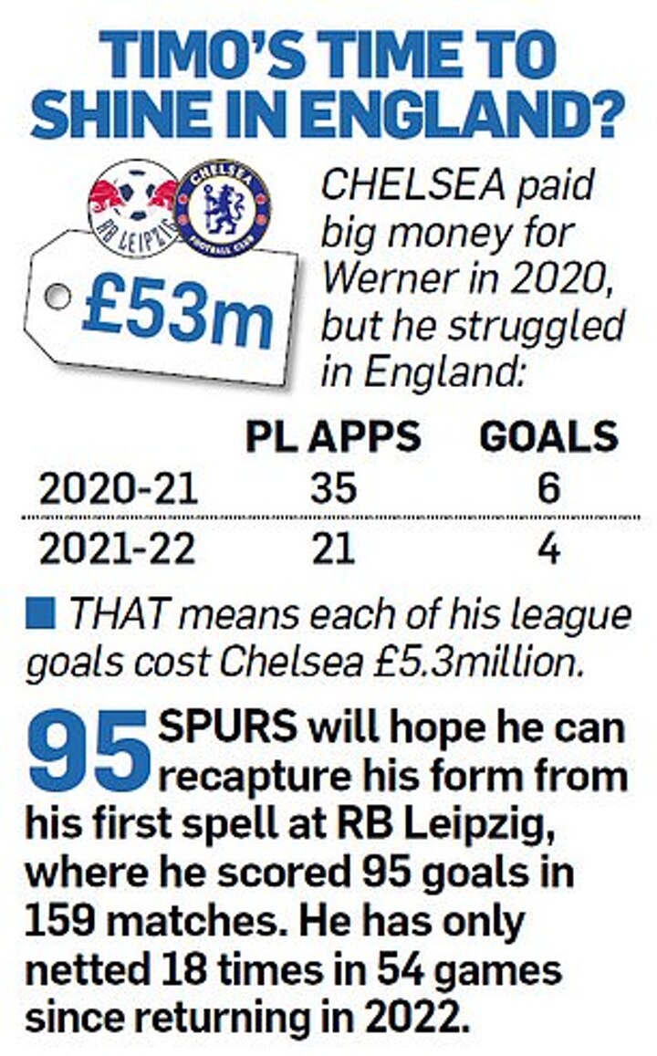 Expect Werner, who believes he can win his place back in the Germany squad for Euro 2024 if things go to plan at Spurs, to feature extensively in that period.