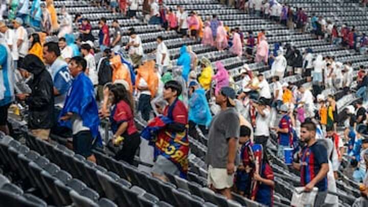 The weather forecast for New Jersey indicated heavy rain and thunderstorms throughout the evening. The National Weather Service had issued a severe thunderstorm watch, warning of possible strong winds, heavy rainfall, and lightning. This watch is in effect until late evening, coinciding with the scheduled kickoff time of 7:00 PM local time, though it is now pushed back.