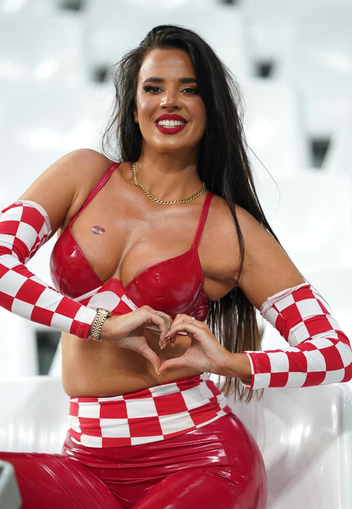 Her red and white revealing outfits caught the attention of many around the world, posing for pictures inside the stadiums with fellow supporters and for the paparazzi.