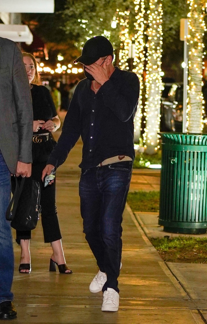 She beamed in a black outfit as she joined Leo's glitzy party in at Papi Steak in Miami Beach, Florida.