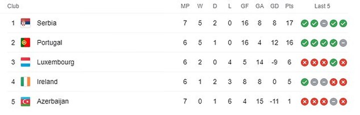 They will finish second at worst, sat 10 points above Luxembourg in third with just two games to play. But it's currently Serbia who top the group, albeit having played a game more.