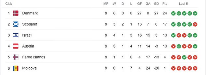 They have won six of their eight games, though drawing against current runners-up Norway and losing to Turkey in their opening fixture back in March.