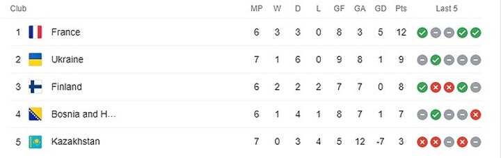 Up next for Les Bleus is a home tie against Kazakhstan, who haven't won a game yet in their seven matches to date.