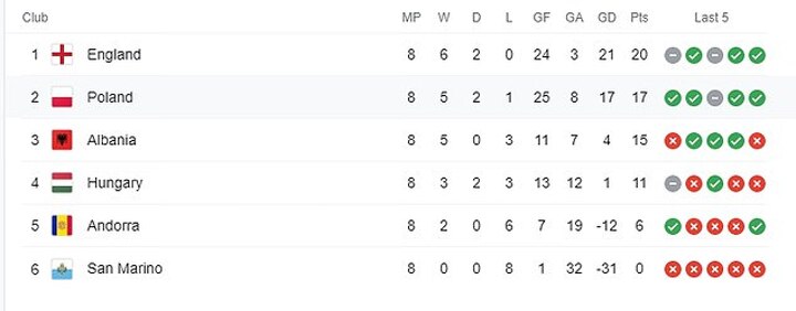 The Three Lions could have guaranteed at least a top-two finish and moved five points ahead of current runners-up Poland with a win, but they were made to settle for a 1-1 draw.