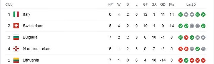 With two games remaining, they are on level points with current runners-up Switzerland, who are behind on goal difference alone.