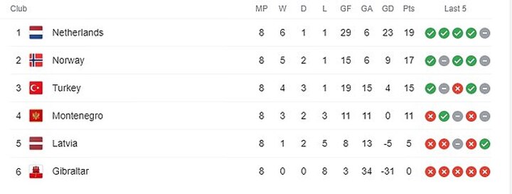 It could be a very different picture come the final group game, with the Netherlands facing a difficult trip to Montenegro, while Norway play at home to Latvia.