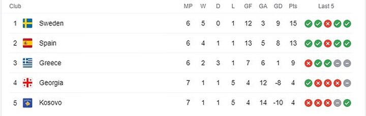It's currently Sweden who lead the way, having won all but one of their six games, including a 2-1 victory over Spain, with their sole defeat coming against Greece.
