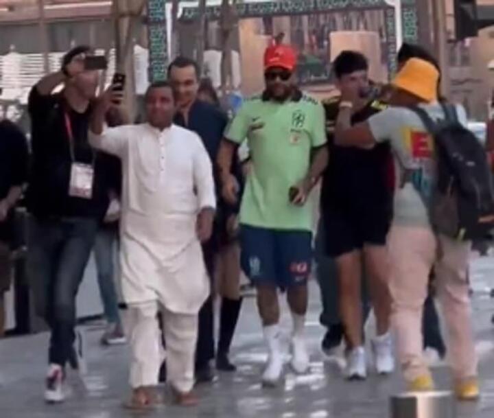 'Neymar walking around Doha,' FOX wrote on Twitter with the accompanying footage, where 'Neymar' appeared to be escorted through a crowd by a member of the Brazil entourage, decked in team gear.
