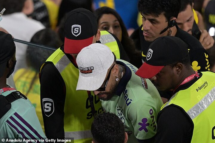 He was seen in tears as he hobbled around the Brazil bench during Brazil's opener and was treated with ice packs.