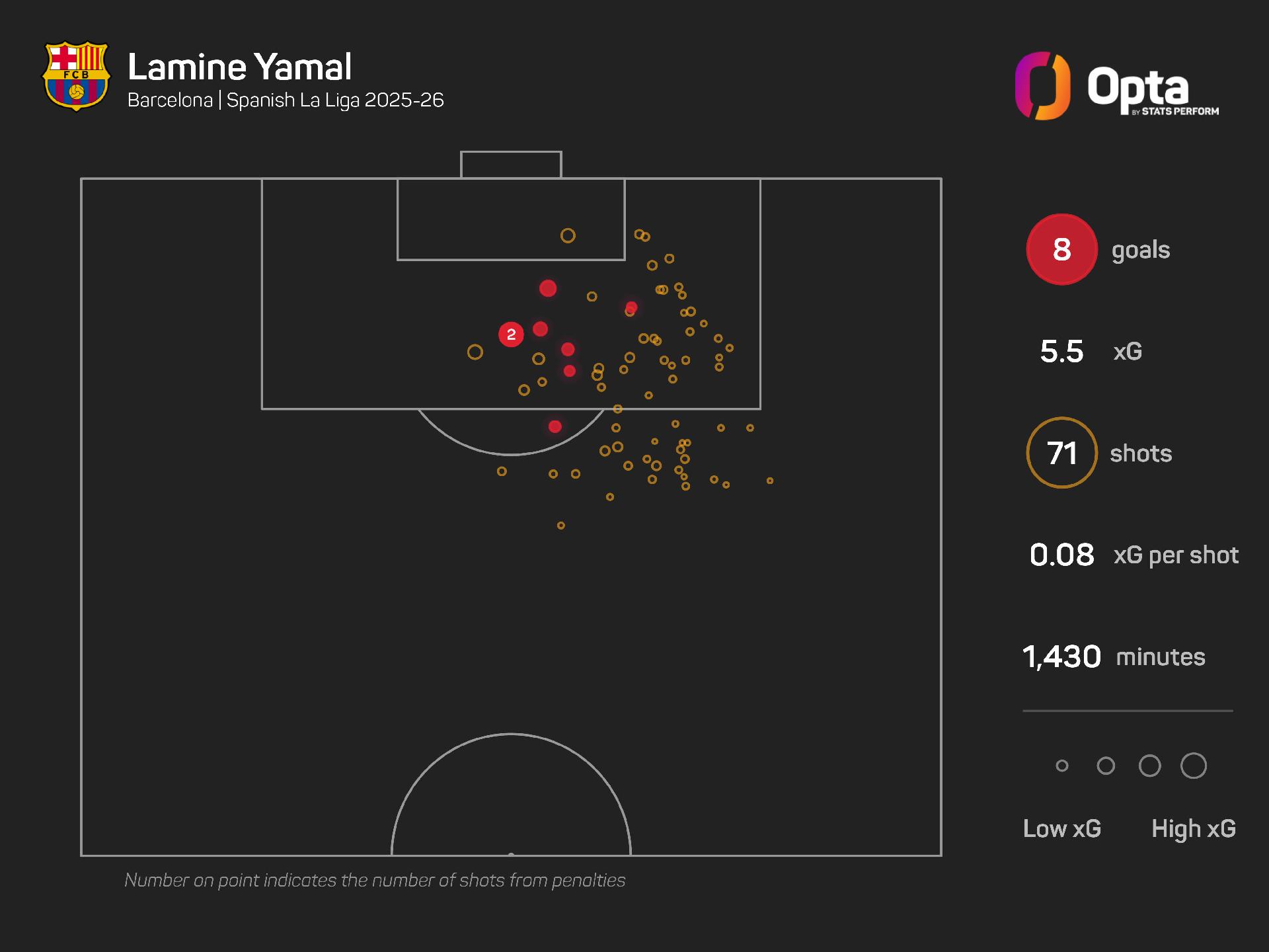 Yamal has now registered eight goals and eight assists in LaLiga this season, a total only bettered by Real Madrid's Kylian Mbappe (25 – 21 goals, four assists).