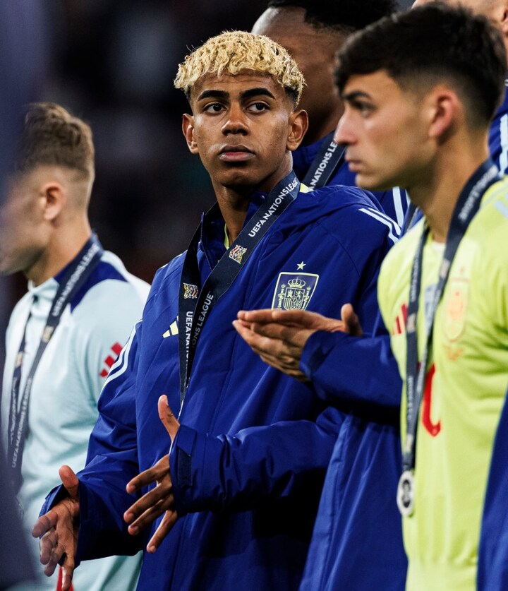 LAMINE YAMAL has been called out by some fans for his actions during Portugal's trophy lift at the Nations League.