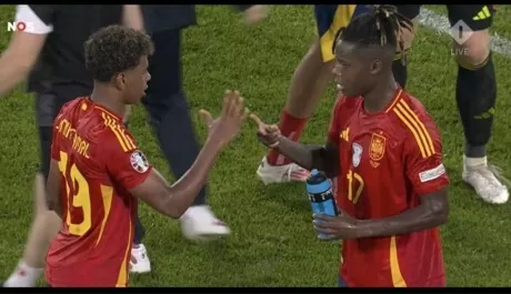 After the game, Nico and Lamine played rock, paper, scissors to find out who takes the bottle of water first. Just after cooking Georgia 😂😂😂