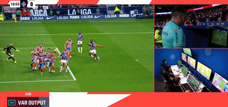 第56分钟,哈维-桑切斯任意球直接射门,皮球折射后入网,马竞2-2