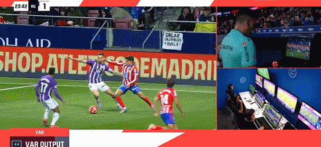 第9分钟,格列兹曼倒在禁区内,主裁判没有判罚