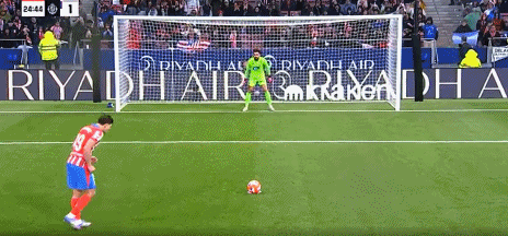 第25分钟,西蒙尼造点,阿尔瓦雷斯主罚扳平比分,马竞1-1