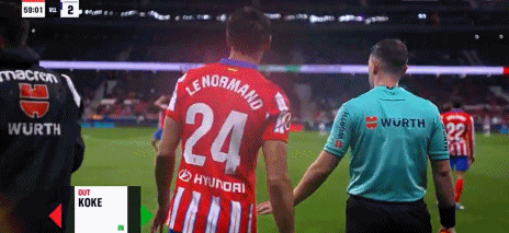 第74分钟,马竞换人,勒马尔换下西蒙尼