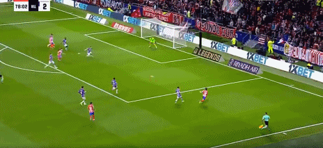 第72分钟,马科斯-略伦特造点,阿尔瓦雷斯主罚命中,马竞3-2