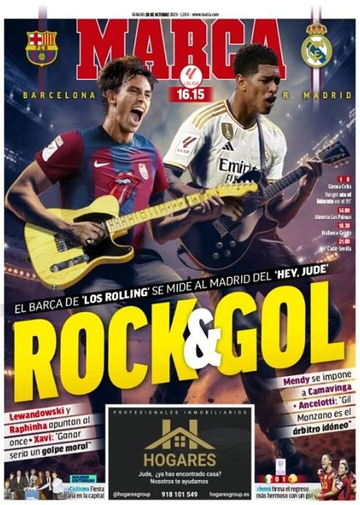 Meanwhile, Marca have gone with the headline 'ROCK & GOL', with edited photos of Joao Felix and Bellingham playing the guitar.